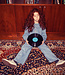 Piupiuchick Jacket | Washed blue denim w/ black hearts
