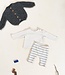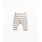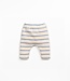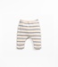These leggings are made of knit fabric with a blend of regenerative cotton and recycled cotton, in Blue color. They feature an elastic waistband, a decorative wooden button, and a striped pattern.
