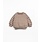 This sweater is made from knit fabric with a blend of regenerative cotton and recycled cotton, in Dark Grey color. It features long sleeves, a round neckline, elastic cuffs and belt, shoulder opening with coconut buttons, and a striped pattern.