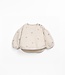 This sweatshirt is made of jersey with a blend of regenerative cotton and recycled cotton, in the color Off White. It features long sleeves, a round neckline, shoulder opening with two coconut buttons, and our flower print.