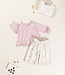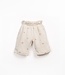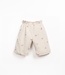 These trousers are made from jersey fabric with a blend of regenerative cotton and recycled cotton, in the color Off White. The model features an elastic waistband, wide legs, and our flower print.